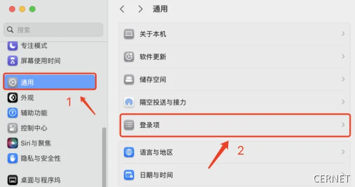 1.路径:设置-通用-登陆项(演示系统版本为:MacOs14.1)