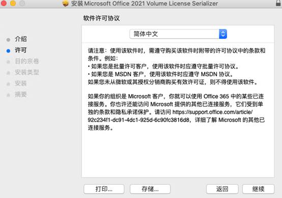 3.检查软件许可协议,然后单击“继续”。